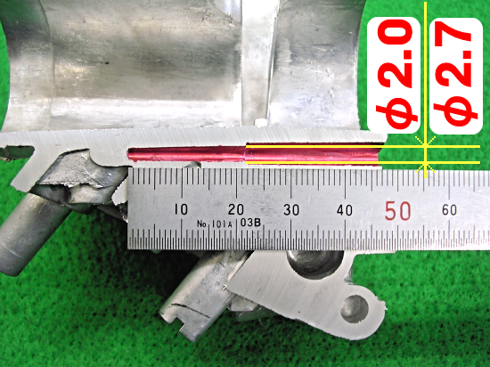 根元径に対して10倍のL寸(φ2.5なら25mm)を鋳造可能です。 |